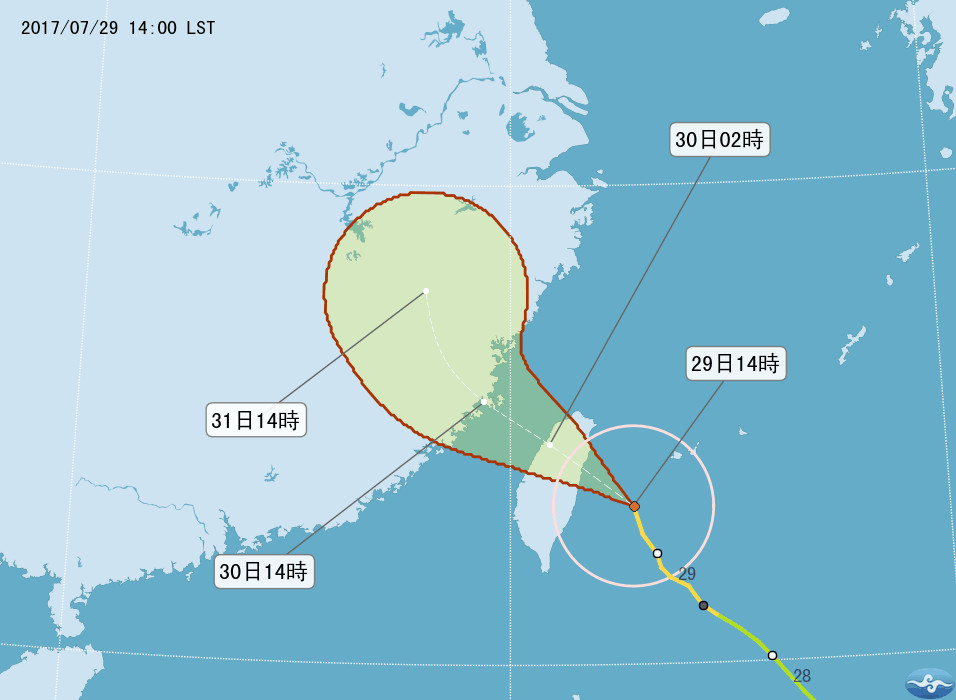 另外,台灣本島和澎湖地區今晚起則都是停班停課狀態。交通方面,台鐵今天下午起西部幹線對號列車陸續停駛,東部幹線和南迴線到明天凌晨零時以前也全部停駛。
