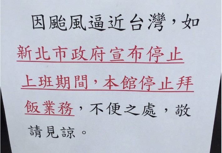 雙颱襲台,全台各地都嚴加戒備,新北市政府殯葬管理處貼出公告表示,在新北市宣布停止上班期間,將停止「拜飯」業務。有網友將公告貼到臉書社團,質疑「亡者不用吃了嗎?」,反被其他網友酸爆。