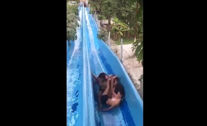 炎炎夏日,許多人都會玩水上遊樂設施,墨西哥兩名女子在玩滑水道時,不幸「卡住了」,不料後方另一位女子快速衝了下來,3人撞成一團,其中一人還四腳朝天飛了出去,現場傳出一陣尖叫聲。