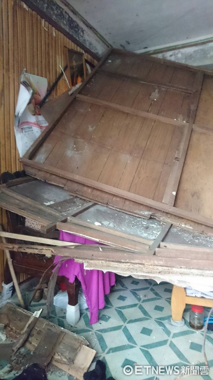 ▲民宅2樓天花板突倒塌,老婦遭困其中。(圖/記者陳豐德翻攝)
