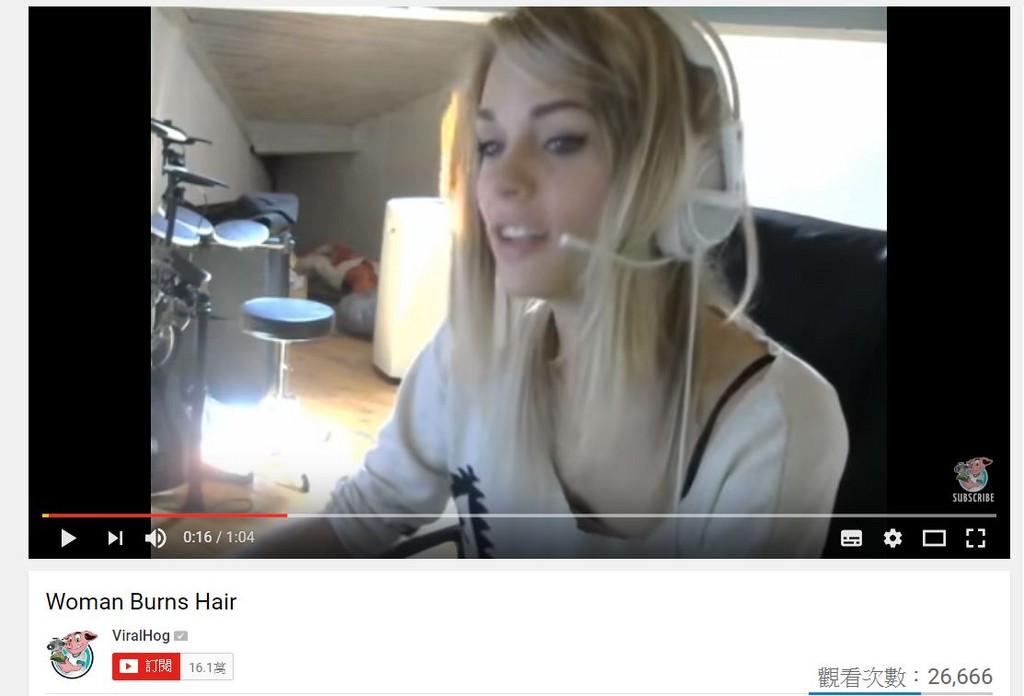 一名金髮法國美女在進行遊戲直播時,一邊與收看直播的網友聊天互動,一邊點燃手上的打火機,就在女子把玩打火機的期間,意外燒着了自己的頭髮卻渾然不覺,數秒後才著急的徒手將火撲滅。
