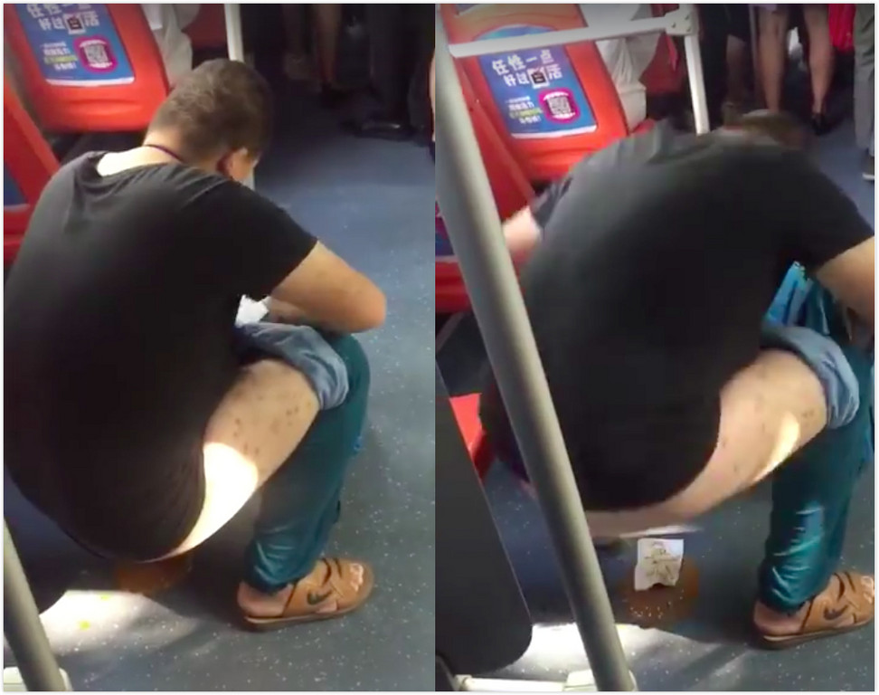 ▲怪男公然脫褲便溺,讓車上乘客感到十分噁心!(圖/翻攝自《城管視頻》粉絲專頁,以下同)