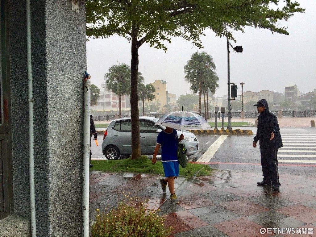 台南市警四分局為確保轄區於尼莎及海棠颱風風災後的交通狀況,並確保暑假學童就學安全,1日清晨6時由市警四分局梁分局長帶隊,並動員警力冒大雨進行護童,疏導安平交通不打結。