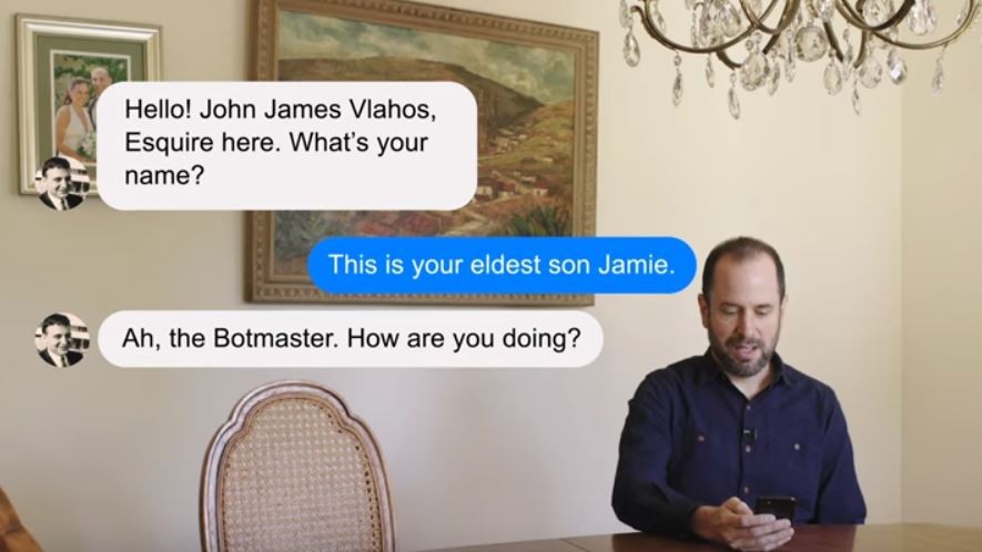 詹姆斯的父親在2016年被診斷出罹患肺癌晚期,當時他就在想,有天老爸一定會離開人世,到時候自己該怎辦?據8月《連線》雜誌(WIRED)報導,詹姆斯在父親還沒去世時,接觸了Pullstring公司,一家專門利用人工智慧,建構出虛擬機器人,使用程序進而可以與去世的親人對話。