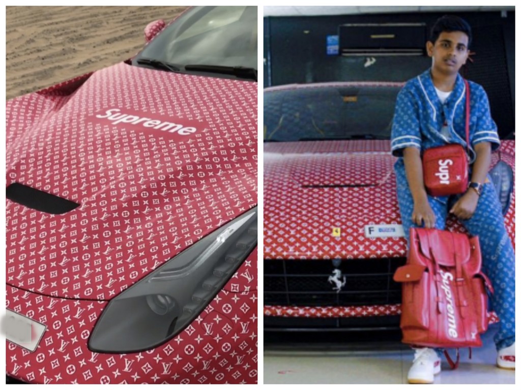 杜拜少年將法拉利跑車車殼全換成LV X Supreme紅色印花,並且在車前蓋與車尾漆上大大Supreme Logo,影片在短短一天內便累積超過30萬點閱,網友紛紛留言:「杜拜就是厲害」、「我15歲時在幹嘛」、「聯名衣服我都買不起,更何況是跑車」。