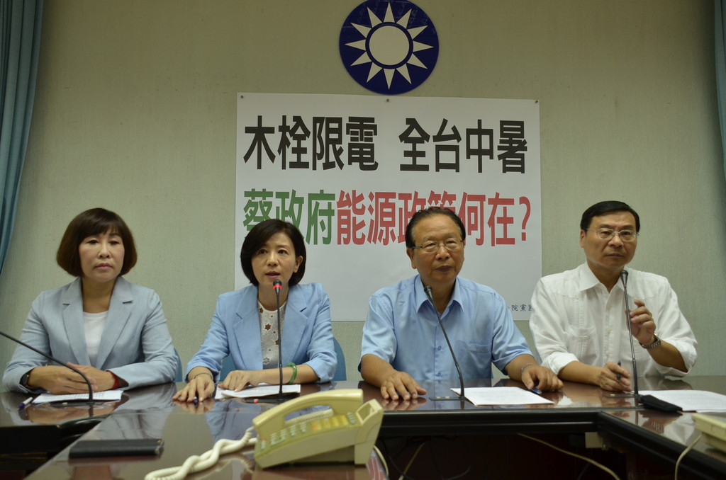 因和平電廠位於宜蘭的輸電鐵搭被尼莎颱風吹垮,引發限電危機,行政院發函要求公家機關在用電量最高的下午1至3點關掉冷氣。對此,國民黨團7日痛批,蔡政府「護財團、漠視人民」,應先減少工業大戶的用電量,而非限制民間用電,拿公務員的健康換取政策不跳票的美名,「讓全台都中暑」。