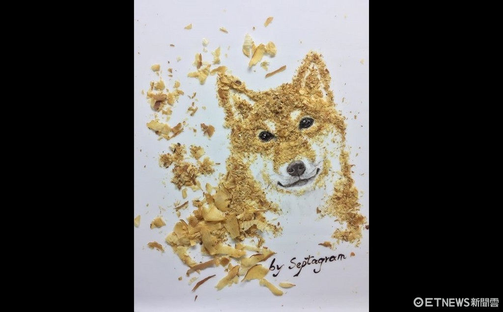▲網友翁逸庭用柴魚片做出栩栩如生的柴犬。(圖/Septagram果醬畫世界提供,下同)