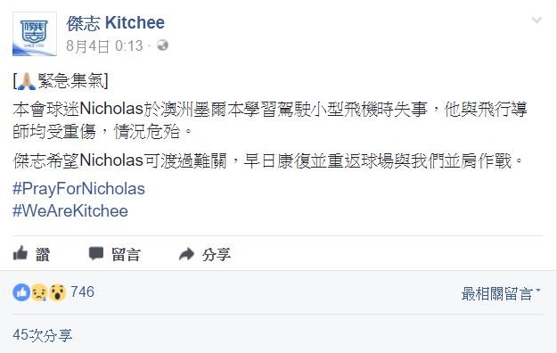 據了解,張殷頌是香港超級聯賽(港超聯)球隊傑志的球迷,傑志得知消息後,在4日於Facebook專頁貼文集氣,祝他早日康復。