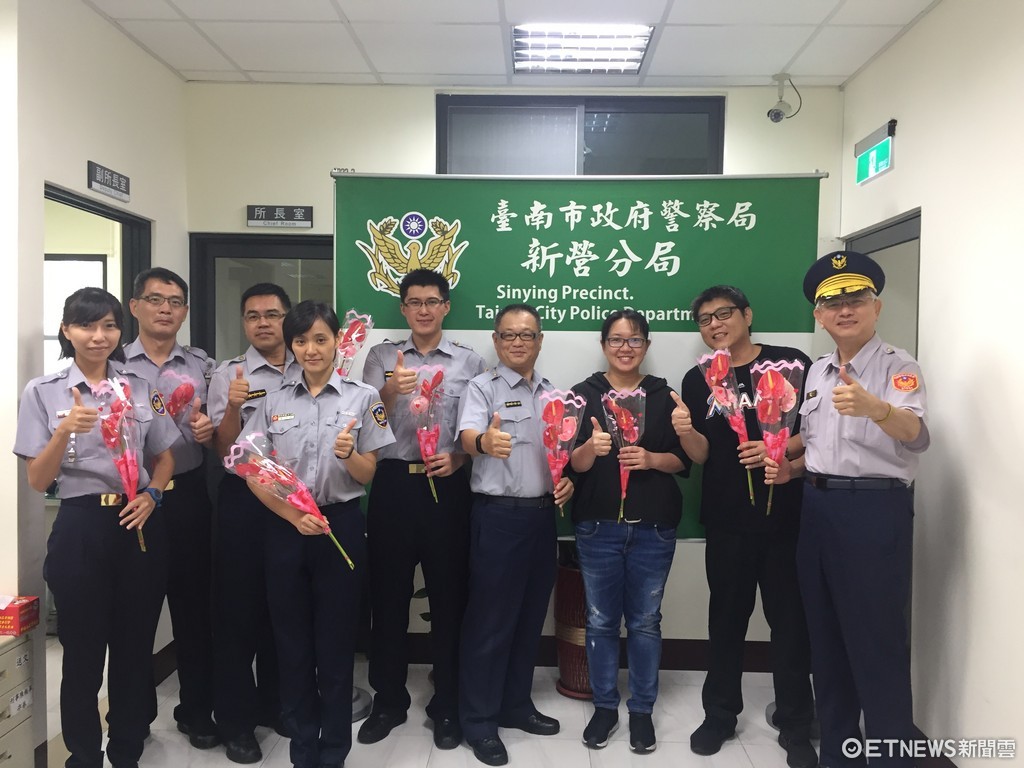 父親節當天,台南市警新營分局送火鶴花,感謝員警的付出,祝福這群長期以來堅守崗位的警察爸爸「父親節快樂!」,這群平日不苟言笑的波麗士爸爸,接下這份祝福,難得展現鐵漢柔情,紛紛笑稱大男人拿花「金歹勢」。