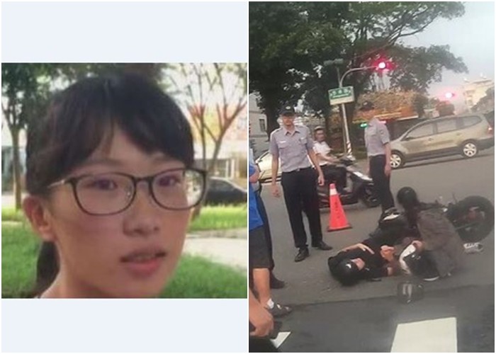 ▲騎士受傷倒地正妹緊握他的手,原來是熱心路人不是他女朋友。(圖/記者謝侑霖翻攝,下同)