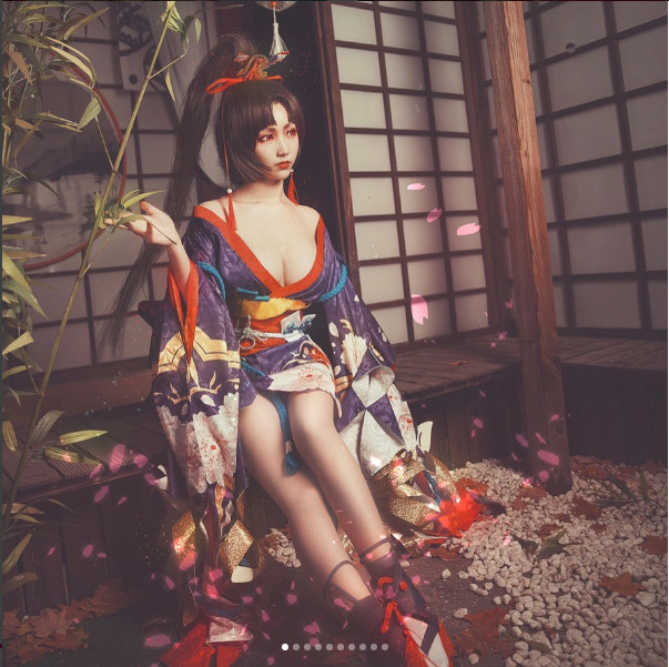 ▲低胸和服化身為「陰陽師」中的妖刀姬。(圖/翻攝自犬神洛洛子IG)