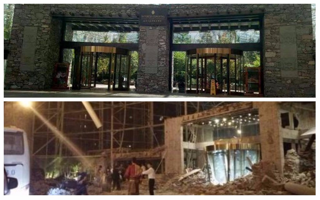 ▲九寨溝7.0強震,當地一處飯店傳出災情。(圖/翻攝自微博)