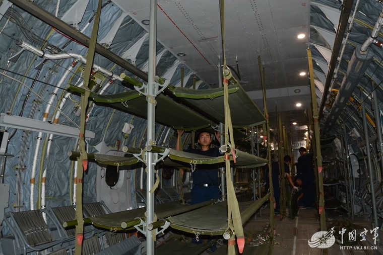 報導表示,出動前,除了七十餘架救護擔架正被緊急送往機上安裝之外,領航員們也正在研究計算駐地機場到九黃機場的最佳航線,而空投員則在檢查準備各型號投物傘;最後在晚間10點接到上級指示前,他們已做好全部準備。就時間來看,救災的行前預備就僅花了40分鐘左右。