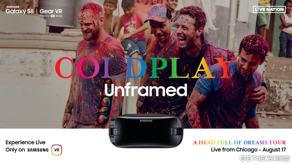 三星電子宣布和直播平台 Live Nation 將首次合作進行VR直播Coldplay「酷玩樂團」在美國芝加哥軍人球場(Soldier Field)所舉辦的《夢過頭世界巡迴演唱會》,屆時全球各地超過50個國家的粉絲將可在全場最佳位置,以全新如臨現場的視角,感受英倫天團的表演魅力。