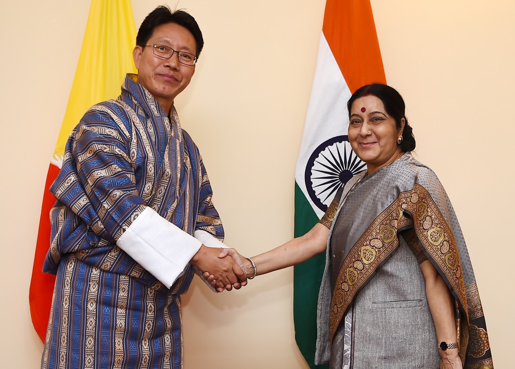 ▲印度外交部長史瓦拉吉(Sushma Swaraj)(右)與不丹外交部長多吉(Damcho Dorji)會面。(圖/CFP)