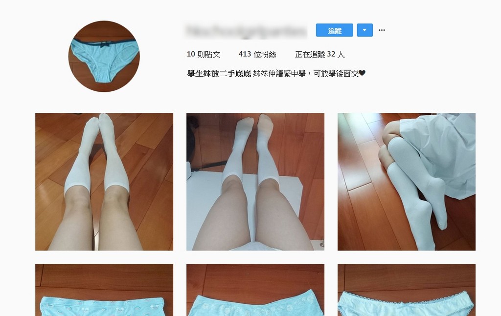 香港《東網》報導,Instagram湧現二手衣物廣告,女賣家疑似親自穿著「貨物」,擺出性感撩人的姿勢,配上極盡挑逗的文字。「有沒有哥哥想要小妹的絲襪?」「二手底褲穿足兩日,包有漬!」賣家推銷內衣褲、絲襪、泳衣等,每件價格100至300港幣不等。