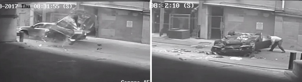 從停車場的監視錄影畫面可以看到,SUV車主從想要倒退停車,到BMW sedan汽車墜落時間只有6秒。汽車墜落後,現場一片沉寂,過沒多久,現場的工作人員趕緊到車子旁看狀況,並打開車門,其他在場的工人也上前幫忙。