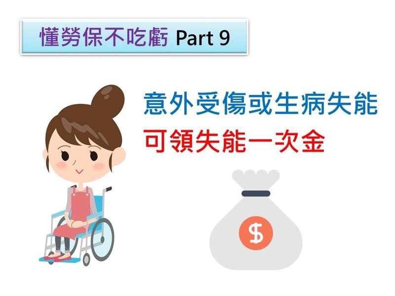 勞保是政府照顧勞工的社會保險,不論是意外受傷或罹患疾病,都可以請領勞保傷病給付,但很多勞工不知道,勞保還有失能給付可請領。現在我們就透過9張圖,讓你一次抓住勞保失能給付的重點。