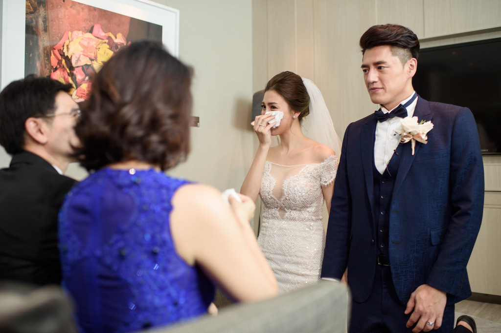 米雪兒提到在拜別父母時有流下眼淚,當時爸媽警告阿布,「一定要對我好,不然又死定了」。阿布則提到,「這種時候真的很容易哭!」除了在迎娶時落下眼淚外,阿布提到老婆在挑入場的音樂時就先哭過一次了,「其實就是一首結婚進行曲,只是改編了一下⋯」。