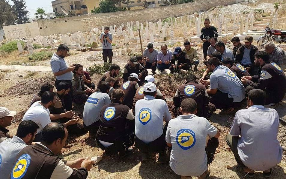 該組織已將7名不幸遇害的成員安葬,所有人頭低蹲著,並為死者禱告,希望他們安息。事情傳出後,救援組織「白盔」的推特上,瀰漫著悲傷氣氛,與多人都以照片表達說對他們的支持「Save White Helmet」,也有人傷心地說,努力救人的人,最後卻救不了自己。