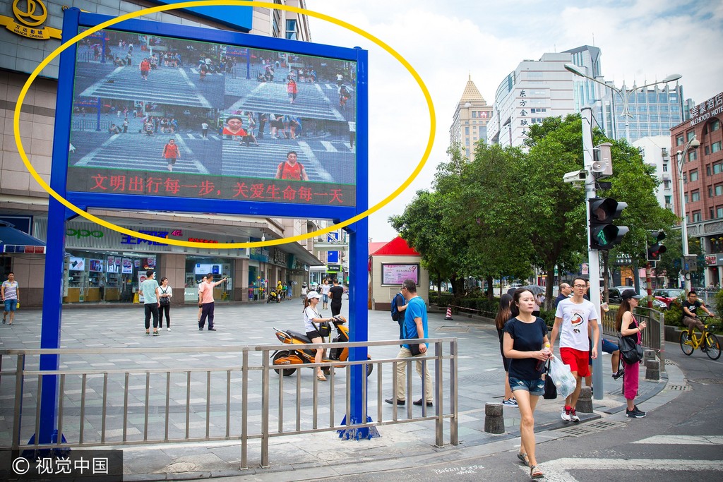 中國為了整頓行人闖紅燈的現象,推出各種「奇特」方法。南京市新街口裝置臉部辨識設備,只要有行人闖紅燈,違法身影就會被一旁的監視設備拍攝下來,系統會將照片貼在公共螢幕上,並配合語音提示「昭告天下」,讓一旁的民眾都知道誰闖了紅燈。
