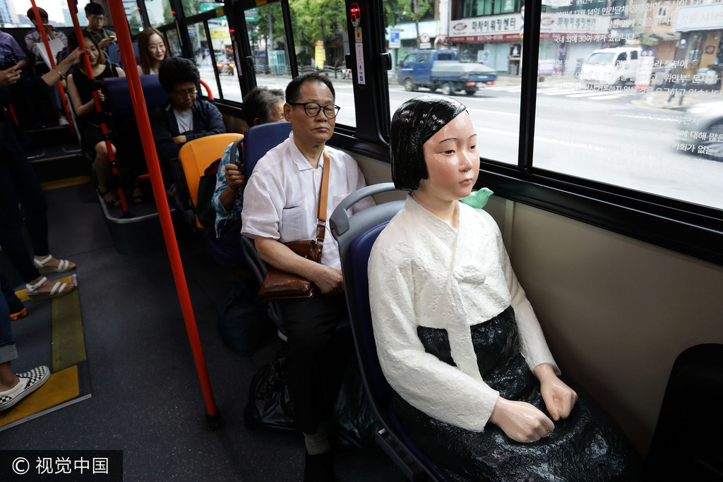 ▲南韓公車上裝設慰安婦少女雕像。(圖/CFP,以下皆同。)