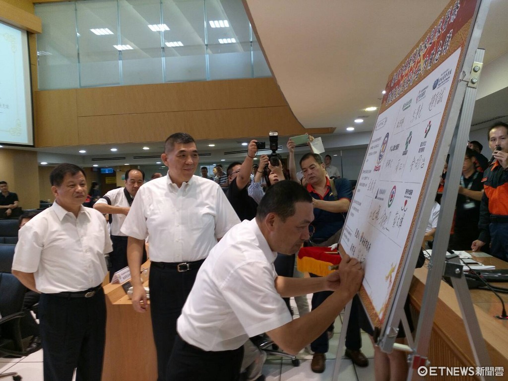 新北市特搜隊戰力再強化!為加強特搜隊隨隊醫療效能,提升災害現場救護品質,新北副市長侯友宜15日上午在新北災害應變中心與消防局、雙北市醫院、土木、結構技師公會以及台北市陪伴犬協會等9個單位簽訂合作備忘錄(M.O.U),建全救災隊伍組成。