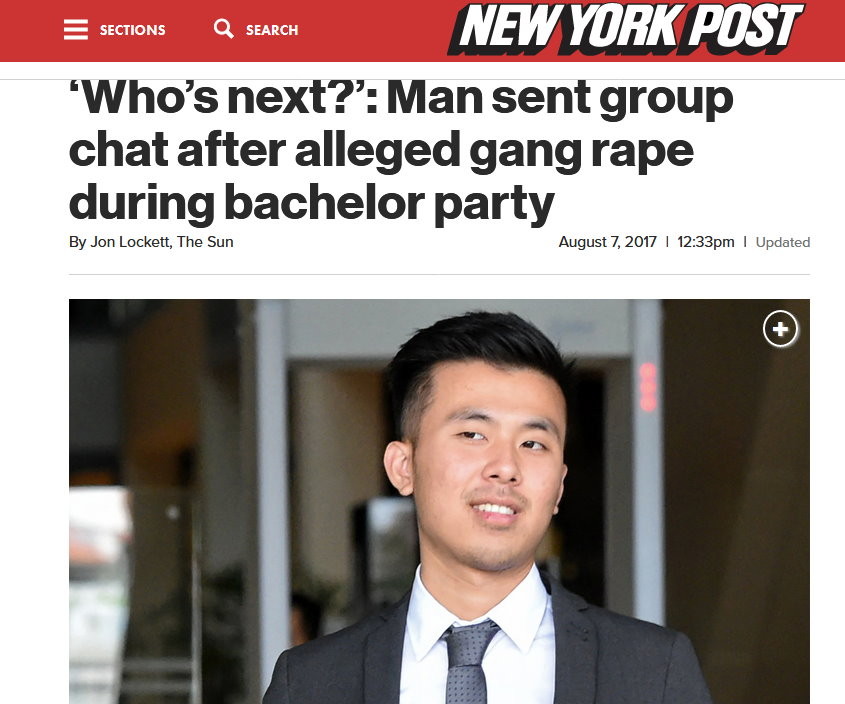 3名英國籍越南裔男子去年9月在新加坡一家飯店房間內,性侵一名22歲馬來西亞女子。三名被告孔城心(Khong Tam Thanh)、黎麥可(Le Michael)與武泰山(Vu Thai Son)經過認罪協商後,本周一(14日)在新加坡法庭上承認嚴重性侵罪。當中兩名被告還分分別承認犯下「侮辱女性尊嚴罪」。 周二3名被告分別被判處5年半至6年半不等的徒刑,3人也時被判5至8下不等的鞭刑。