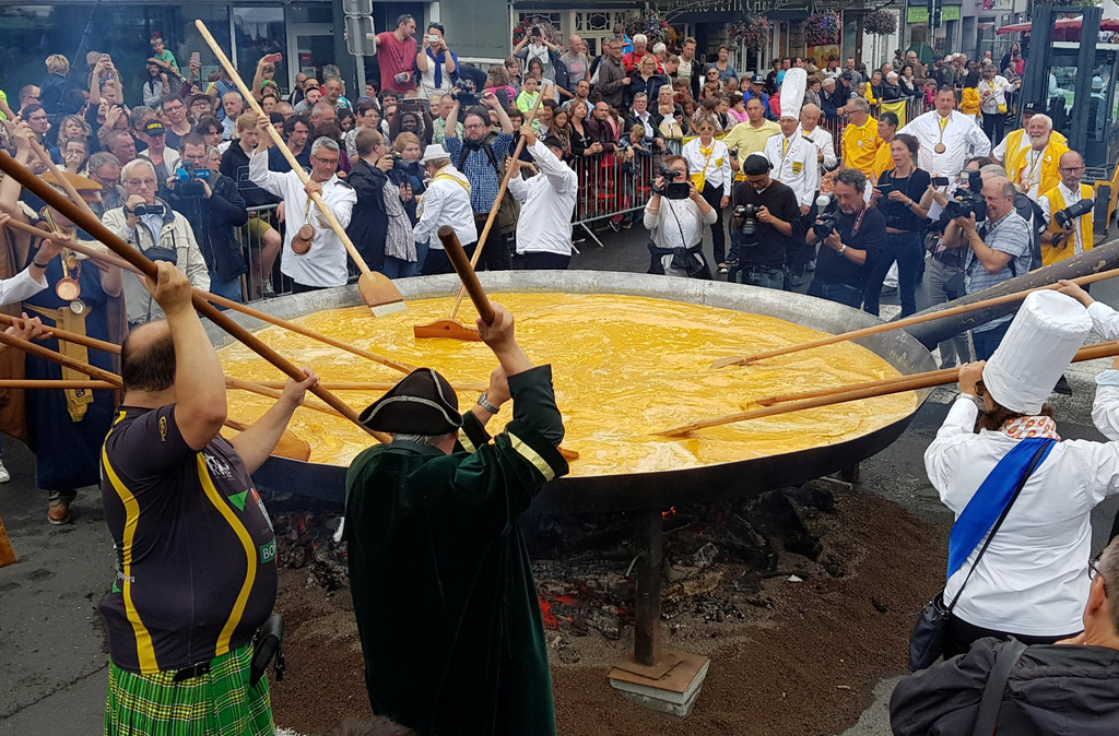 據BBC報導,廣播公司RTL說, 此次活動中馬爾美地的雞蛋都經過「嚴格檢查」。巨大炒蛋由1萬顆雞蛋、培根、蔬菜等一起烹飪,大家齊力在4公尺的鐵盤內攪動鏟子炒成炒蛋。不過,巨大炒蛋節的發起人羅伯特(Robert Ansenne)還是很緊張,「你會聽到很多謠言,人們都說有點害怕」。
