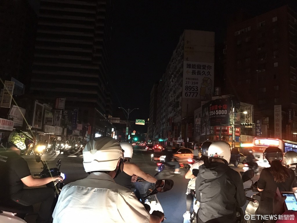 ▲15日全台大停電,台北街頭一片漆黑。(圖/記者賴文萱攝)