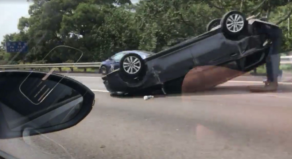根據交通部運輸研究所資訊,16日下午2時許,國道3號南下105.6公里,香山前中外線發生一輛自小客車翻覆,占用中線。事故一度導致車流嚴重回堵,有民眾行經將影片PO上爆料公社,提醒路面有許多破碎零件,網友紛紛留言「願平安」,結果引發重機騎士憤怒痛批「再飆啊」、「很明顯是競速飆車的下場」,狂酸「輪數對了什麼都對了!」