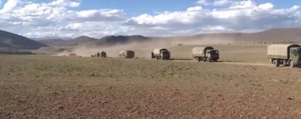 ▼與上述活動相比,解放軍日前針對中印對峙的軍演,就顯得強硬了許多。圖為大批解放軍車輛翻山越嶺進入西藏高原,並且展開遠火、火箭炮與加榴炮等打擊演訓。(圖/翻攝自中國軍網,下同)