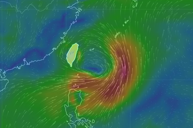 ▲氣象局說,下周四到下周六,必須留意大低壓帶是否有熱帶性低氣壓或颱風發展或接近,目前仍有變數。圖為下周五清晨的「風場預報顯示圖」。(圖/翻攝氣象局網站)