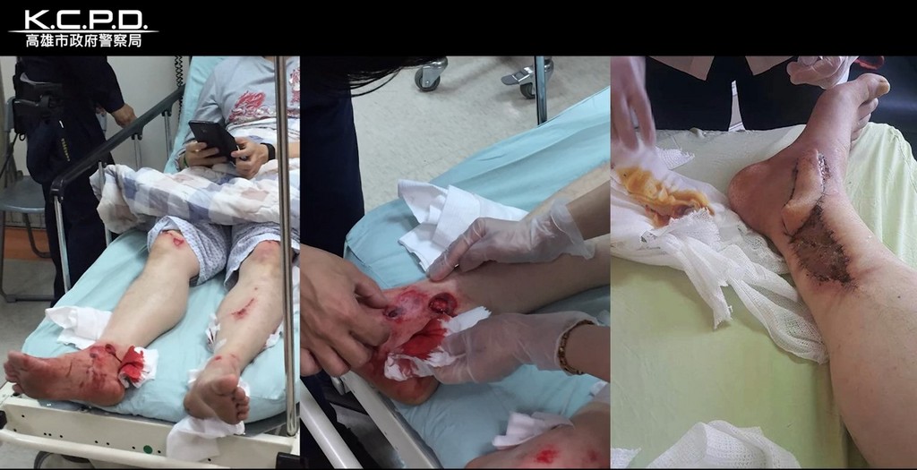 經送醫,吳銘雄左小腿遭異物刺入、3度灼傷,右腳踝被削掉一大塊肉,幾乎見骨。他說,當時無法拔槍,心想「沒死也半條命」,站起來雙腳一直流血,想繼續追,卻無能為力,「嫌犯是意圖置我於死地」,因心虛就撞擊,若是一般民眾恐怕手段會更殘忍。