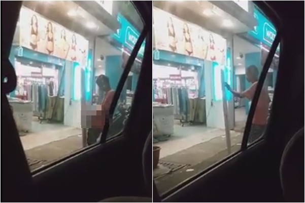 原PO在貼文中寫道,「中醫診所旁邊,也能遇到變態在內衣店面前……」,只見該名男子不顧街上人來人往,對著放置在門口、只穿內衣的女藝人看板掏鳥,接著雙手開始上下移動,過程中還不斷「衝撞」,看板被撞得不斷搖晃;在男子射精滿足後,還將沾有精液的手往女藝人臉上塗抹,行徑相當脫序。