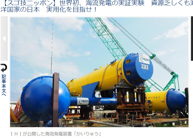 如何安全又環保的發電視一大考驗,日本研究團隊在鹿兒島縣吐噶喇群島外海進行洋流發電實證實驗,藉由黑潮轉動渦輪機成功發電,結果最大發電量達30千瓦(KW),這也是使用實驗機實際利用洋流成功發電的全球首例。