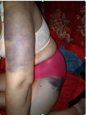 ▼常女遭毆多處瘀傷,女兒也不忍媽媽長期遭家暴,希望父母能早日離婚。