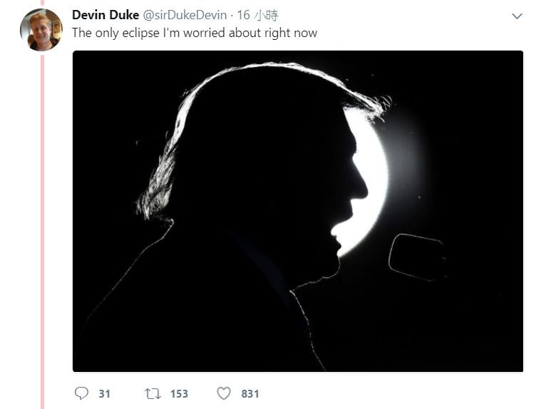 「美國大日蝕」將於美國時間21日正式登場,一共有12州的民眾可以觀賞到此天文奇觀,當地也擠滿了來自各地的遊客前來目睹奇景。美國第一千金伊凡卡也跟上了日全蝕風潮,好心地在推特上貼「知識文」,但卻被網友狠酸「日全蝕過程最多可持續3小時,跟大部分的白宮員工比起來,算長壽了!」。
