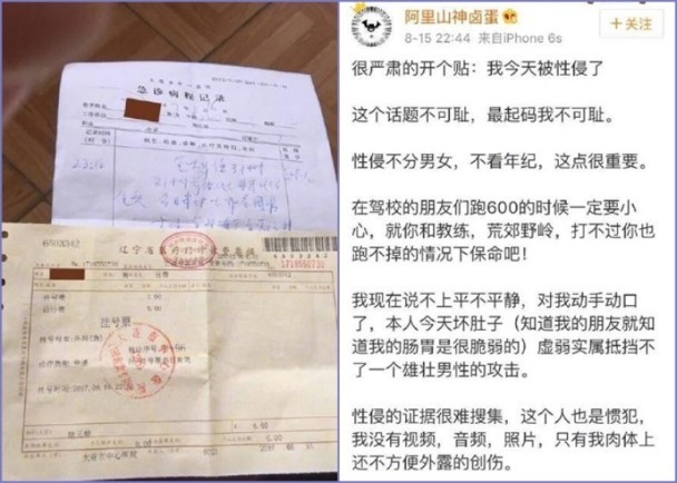 中國大連一名22歲李姓男子日前在微博上貼文,自己在駕訓班練車時被變態教練帶到荒郊野嶺性侵,急診紀錄也顯示他的龜頭被牙齒咬傷。涉事男教練只被拘留15天便放了,駕訓班表示已經將這名教練開除。