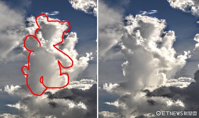 雲的千變萬化再配上人們的想像,一隻「小熊維尼」就這樣出現了!中央氣象局科技中心主任鄭明典在臉書轉貼網友Tyrone Lin拍攝的照片,天空中出現一隻俏皮的熊,乍看還以為是「小熊維尼」。