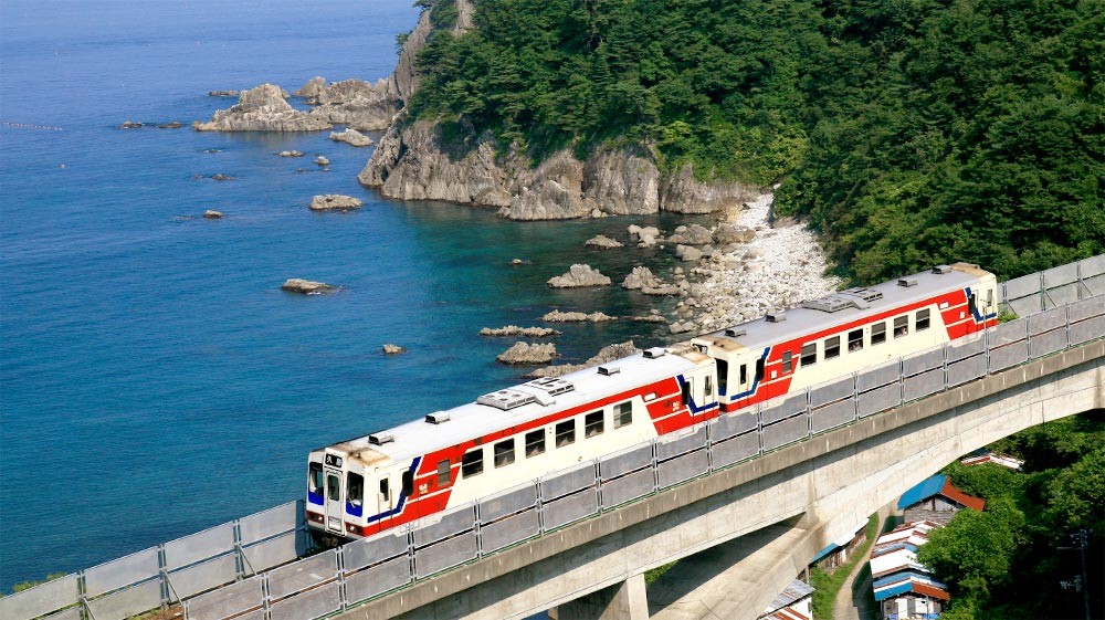 ▲日本觀光局今年首推日本東北三陸之旅,搭乘北陸鐵路到北山崎展望台,一覽太平洋海景及奇岩壯麗景致。
