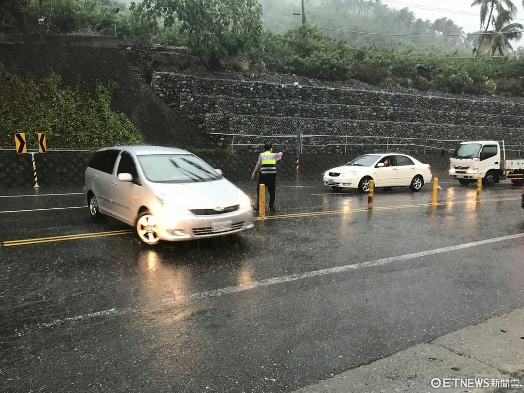 ▲天鴿颱風漸遠雨勢仍大,台東成功警分局仍加強交通安全勤務不鬆解。(圖/台東縣警察局提供 下同)