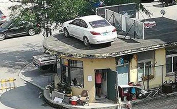 ▲這輛車輛「停好停滿」停在警衛室屋頂上。(圖/翻攝自遼瀋晚報,下同)