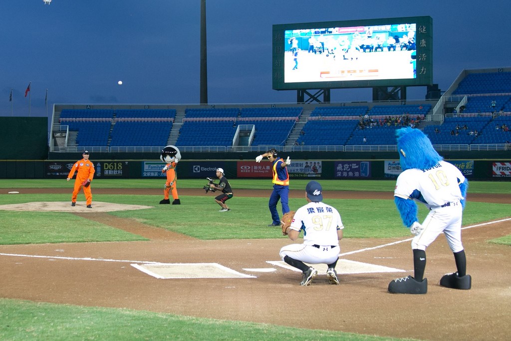 特別的是,空軍司令沈一鳴上將晚間也親臨現場,更「加碼」擔任開球嘉賓,身著飛行服在投手丘上接受機工長彭世安士官長實施飛機帶飛動作、檢查後,順利將球投出,獲得全場熱情掌聲與歡呼。