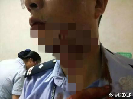 ▲警員滿身是血。(圖/錢江晚報,下同。)