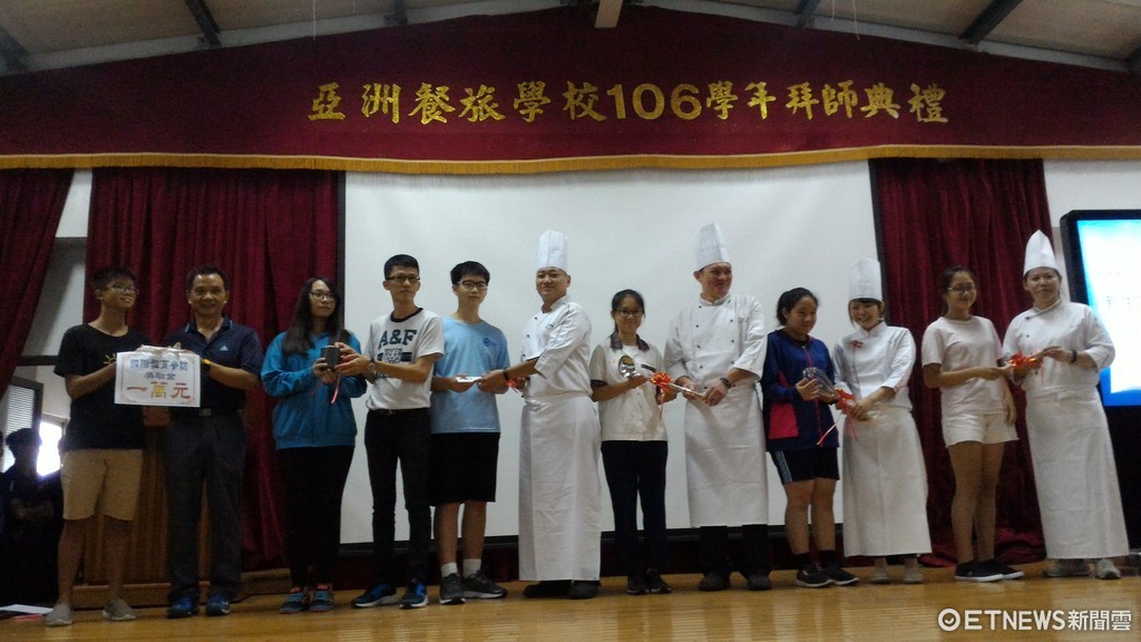 ▲台南市亞洲餐旅學校,一向堅持「品德比廚藝更重要」,每年開學之初新生訓練活動時,都依循古禮拜師揭開訓練序幕。(圖/亞餐提供)