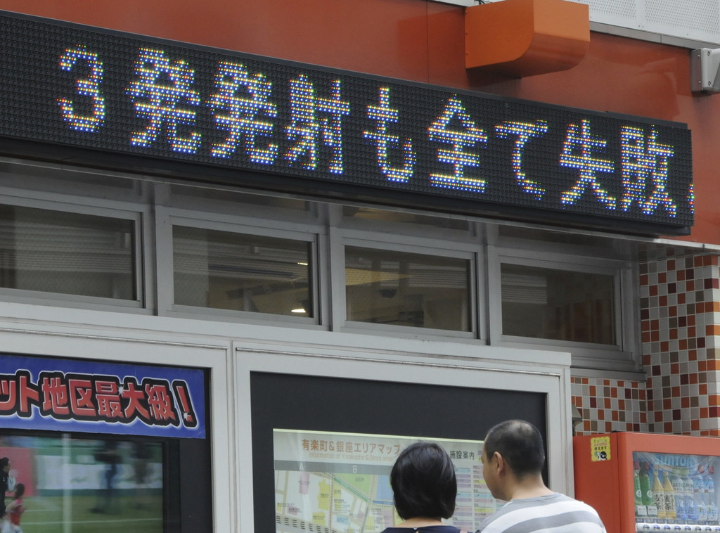 ▲北韓三枚導彈疑全發射失敗,圖為日本街頭跑馬燈。(圖/達志影像/美聯社)