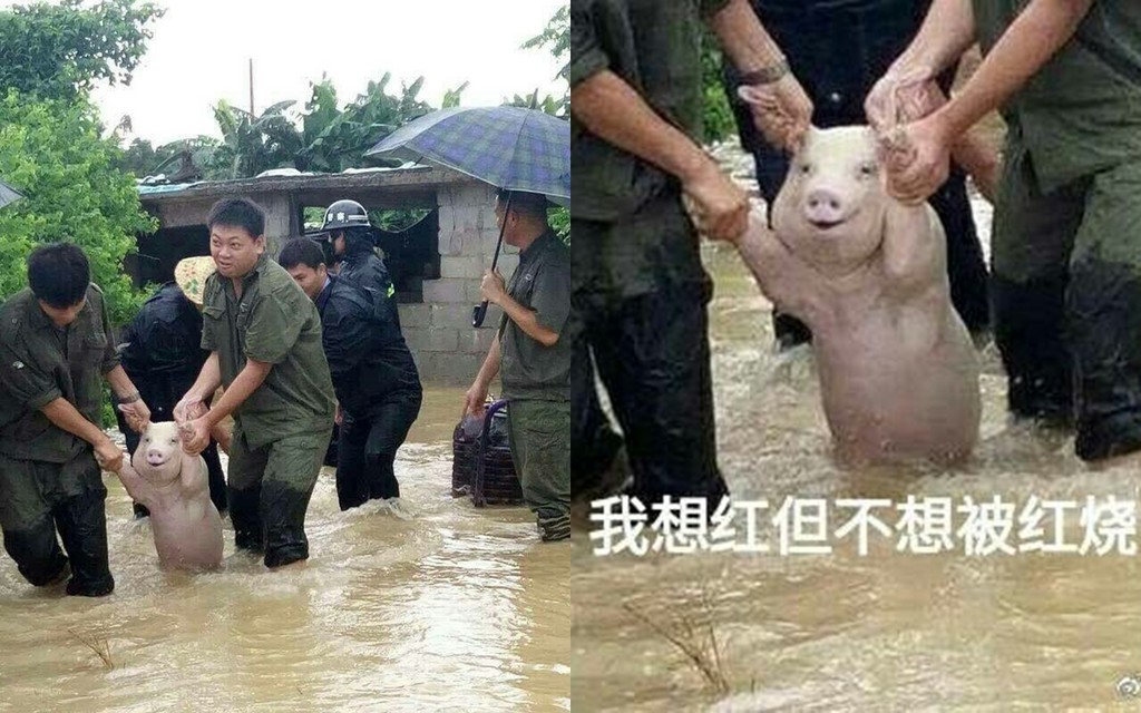 好不容易活下來,先開心笑一個吧!四川宜賓縣横江鎮日前發生洪水,當地村民被通知緊急撤離,民眾也努力轉移重要物資,其中有一隻「小豬」被成功救出時,露出了一抹燦爛微笑,畫面也意外在網路爆紅。