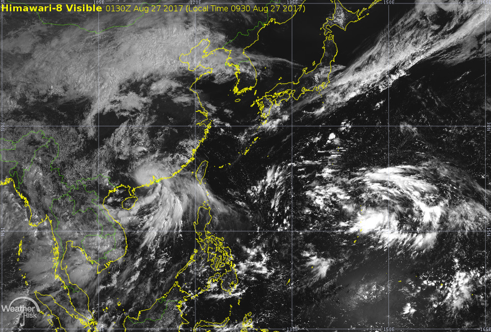 中央氣象局表示,昨(26)日受到颱風外圍雲系影響,花、東及南部地區有局部短暫陣雨或雷雨,其他地區大致為多雲到晴,午後各地山區及靠山區平地有零星雷陣雨發生;今(27)日花東及南部地區易有局部短暫陣雨或雷雨,中部地區也有零星飄雨的可能,其他地區大致為多雲到晴,溫度方面各地高溫約32至35度,北部地區高溫仍可能來到36度以上。