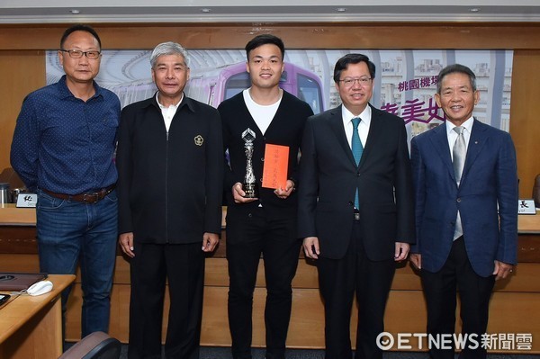 ▲桃園子弟鄭兆村今年5月間於市政會議中,甫獲市長鄭文燦頒給「榮譽市民」獎章,並提供為期2年,每個月2萬元的獎勵金。(圖/桃園市政府提供)